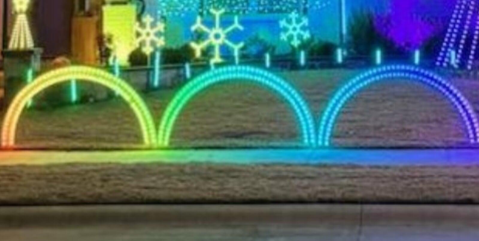 Leaping Arches add smooth, flowing motion to any display. Each arch is made of pixel lighting that “leaps” from one end to the other, creating sweeping patterns that can be synced perfectly to music. Whether used as a driveway border or show accent, they bring rhythm and energy to your scene.