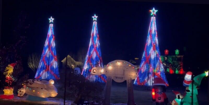 Matrix screens are grids of individually controllable pixels that allow you to create complex animations, text, and images in your synchronized light show. Unlike standard lights, each pixel on a matrix screen can be programmed independently or in groups, giving you full control over patterns, colors, and motion. From scrolling messages to dynamic holiday scenes, matrix screens transform your display into a vibrant, eye-catching spectacle that moves perfectly in sync with your music.